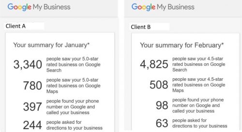 Client A (established client): almost 400 calls/month just from their Google My Business profile.